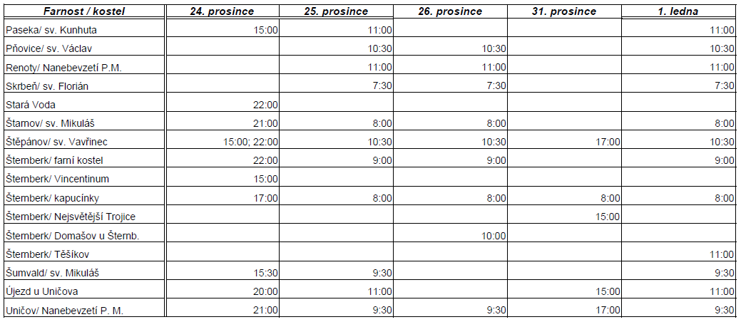-Příští sobotu tedy 13.12. ,po ranní mši svaté v 8.45 prosím o brigádu na postavení betléma a vánočních stromků. Děkuji.